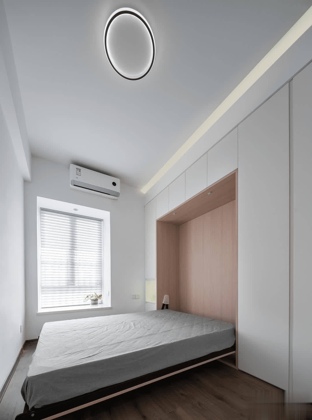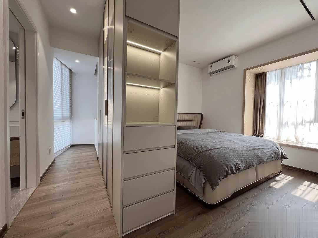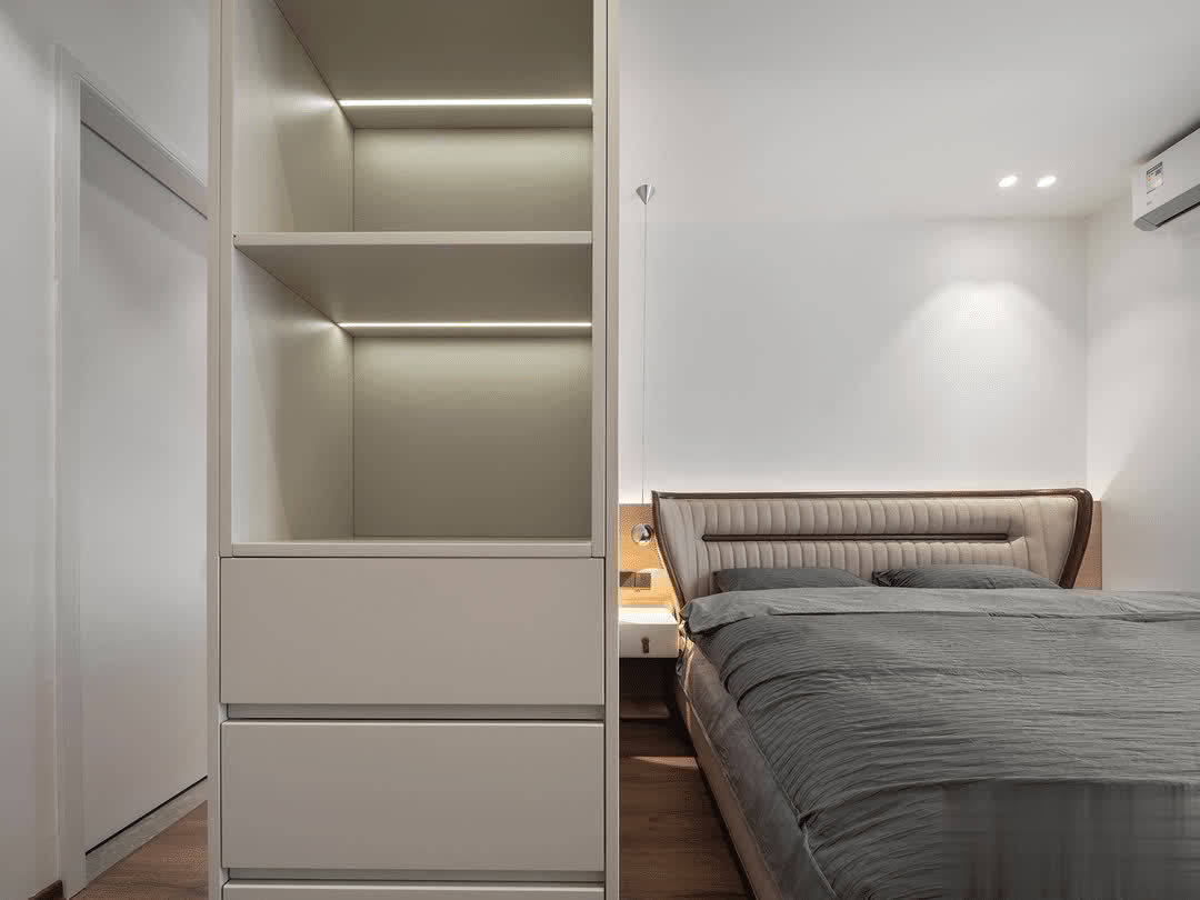 这里依然保持着“穷装”的最高境界,全屋大白墙以及没有多余的硬装饰,放上一张大床就足矣。休息空间本该这样,不需要过多堆砌才能让人轻松。