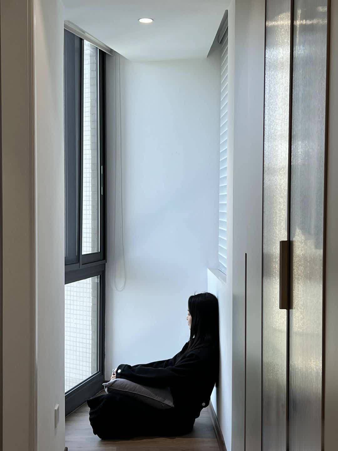 把主卧室小平台打通后,还有了一个小小的休闲区,在这里可以坐着看窗外的风景,甚至也是小哥阅读的地方。
